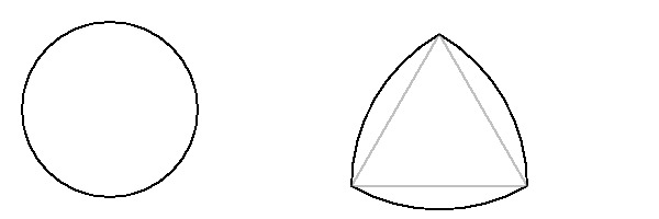 また、上の定理より、幅が d の定幅曲線の一部分が半径 r の円弧ならば、